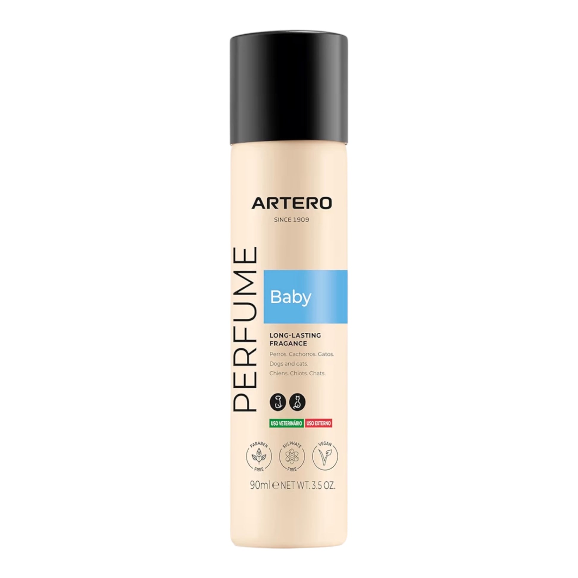 - El perfume para cachorros Artero Baby es un producto formulado con componentes naturales que no dañan la piel del animal.
