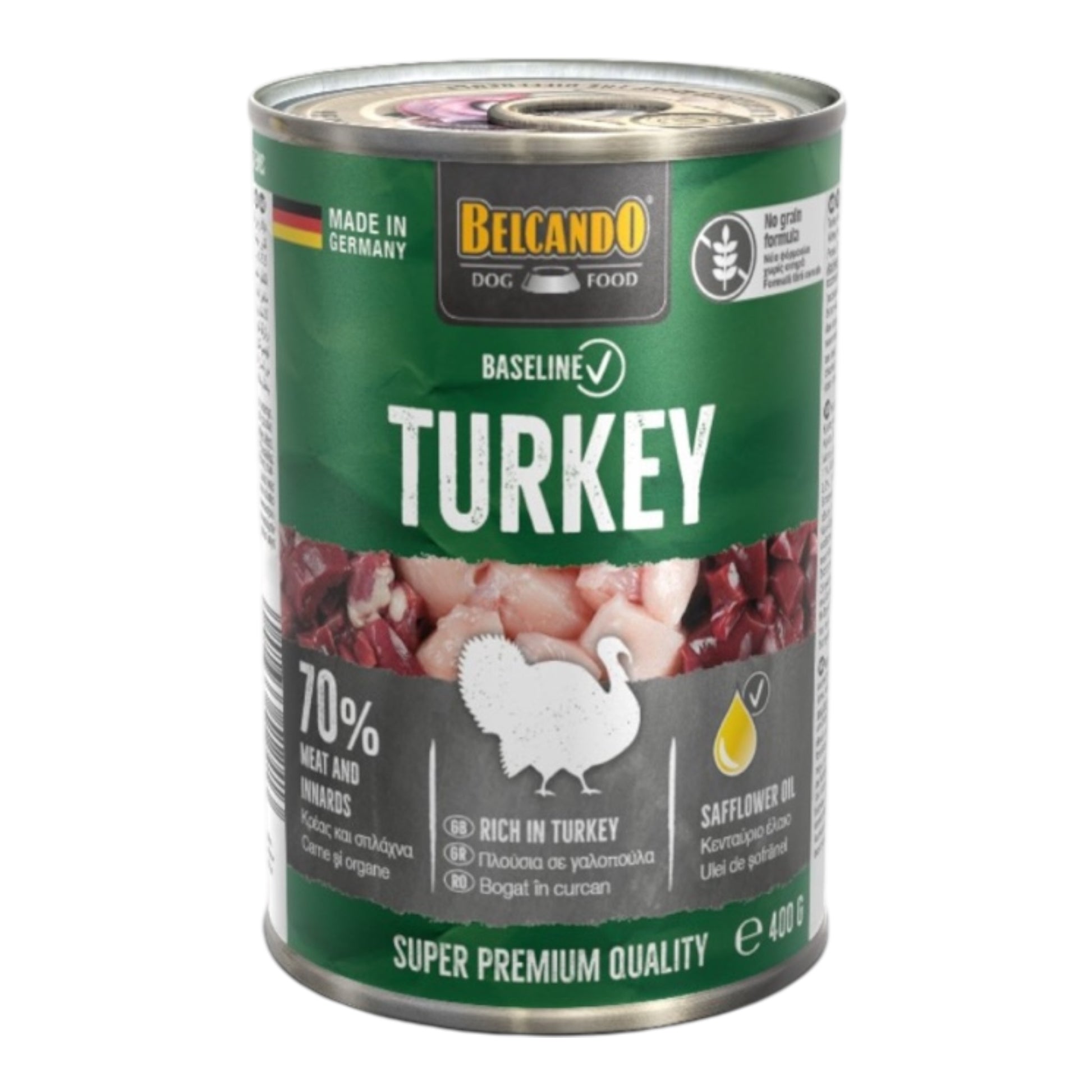 Alimento húmedo completo con un 70% de carne y vísceras. Receta sin cereales. Todos los ingredientes se cuecen suavemente al vapor en la lata para así conservarse de la mejor forma posible. La vitamina E del aceite de cártamo tiene un efecto positivo sobre la piel y el pelaje.