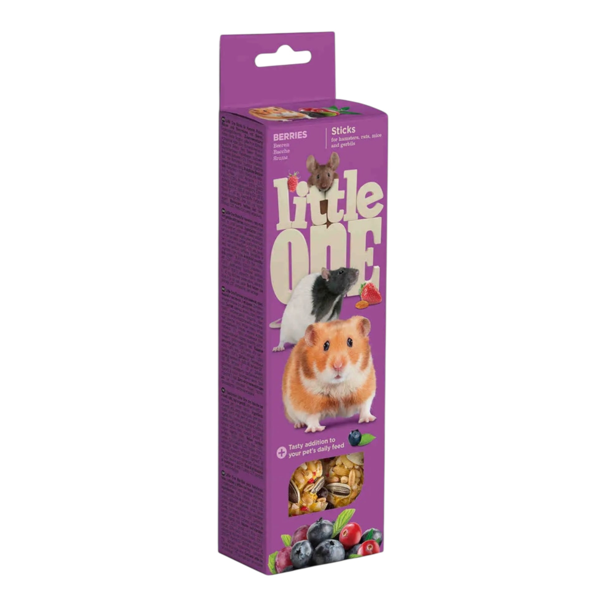 Los Little One Sticks bayas son deliciosos sticks diseñados como complemento alimenticio para hámsters, ratones, ratas y otros pequeños roedores. Están elaborados con una mezcla natural de cereales, semillas y frutas del bosque (como fresas, arándanos y otras bayas), ofreciendo un aporte extra de sabor y nutrientes que tu mascota adorará.