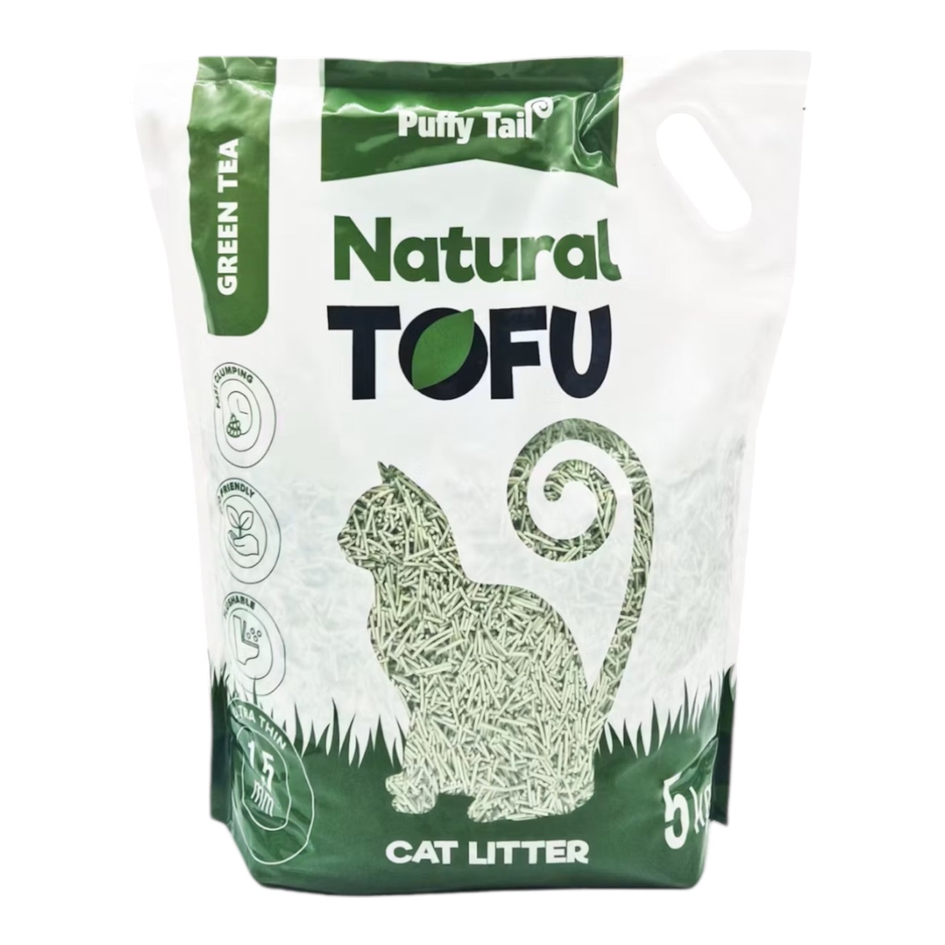Puffy Tail Natural Tofu Green Tea – Arena vegetal para gatos (5 kg)