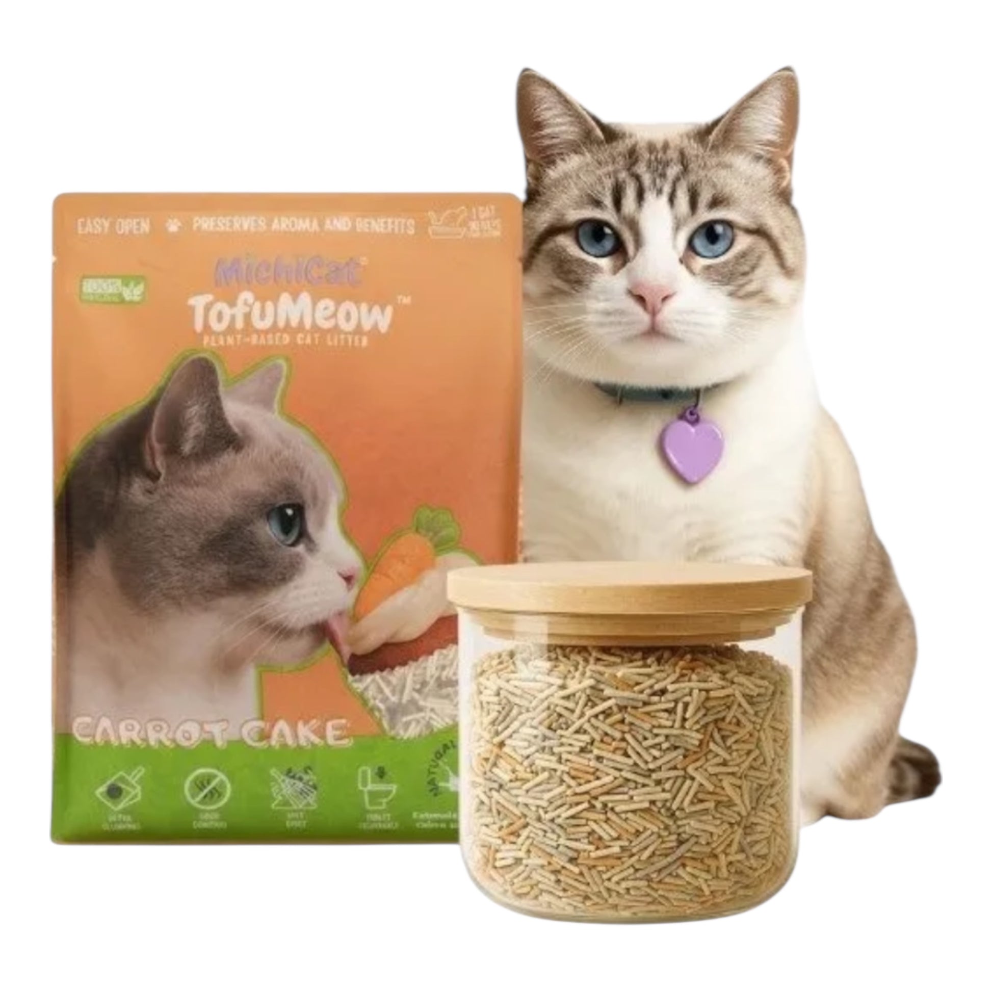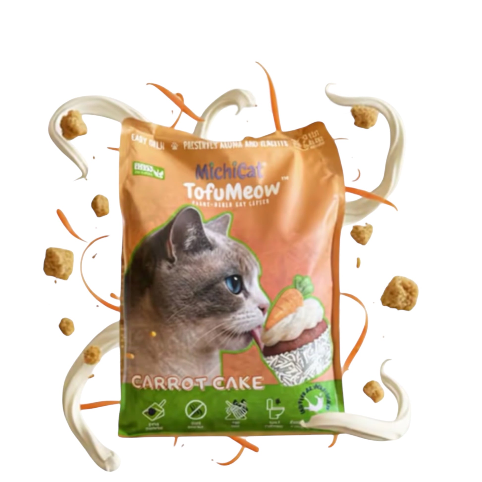 Inspirada en el clásico pastel de zanahoria, TofuMeow™️ Carrot Cakecombina a la perfección la soja, guisante, maíz y bambú para crear una arena 100 % natural, biodegradable y suave para las patitas de tu gato. Su aroma naturalleche (conseguido con leche natural en polvo) 🥛 neutraliza los malos olores de forma natural, sin perfumes artificiales ni químicos añadidos.