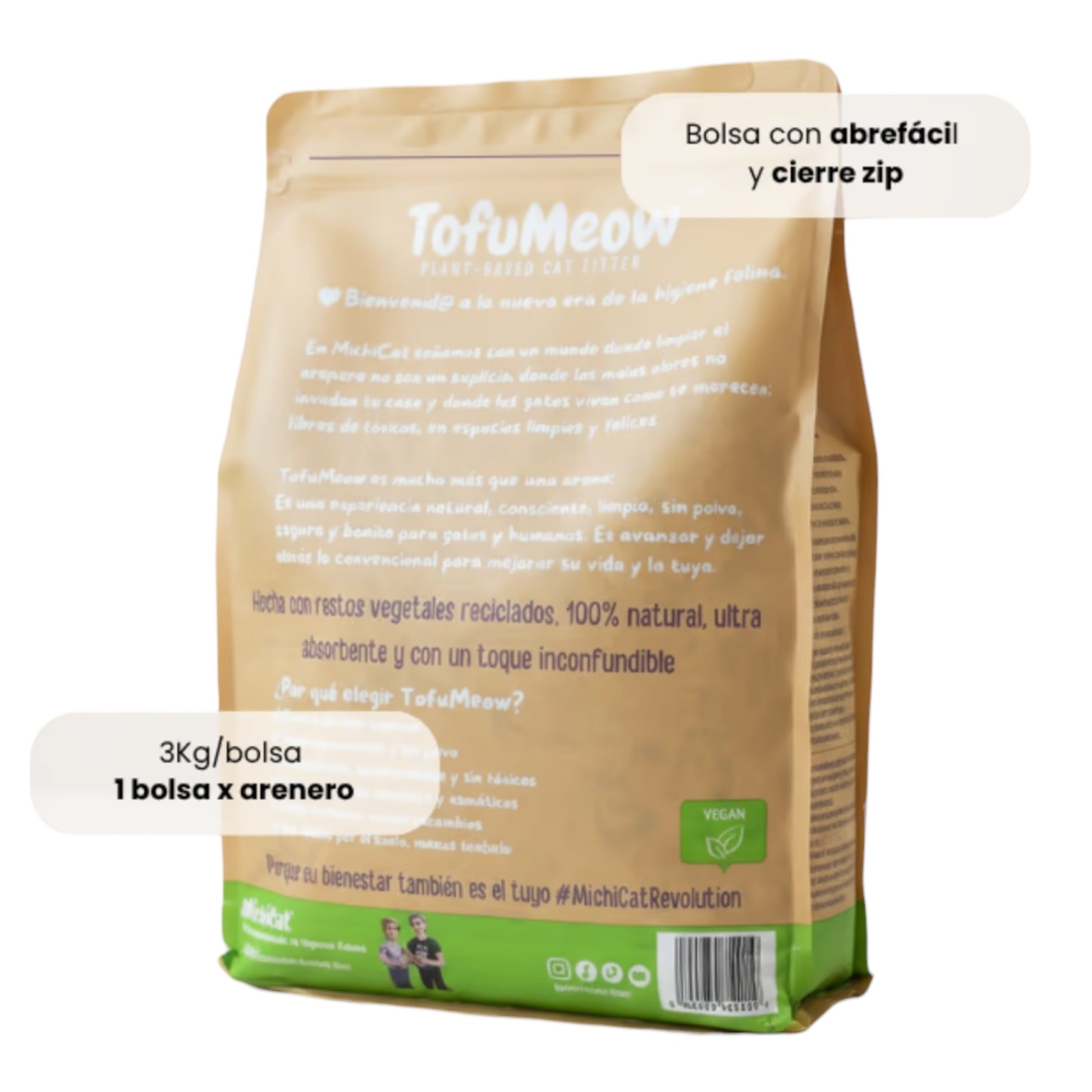 🐾 100 % natural y biodegradable – elaborada a partir de restos vegetales de la industria alimentaria. Economía circular en cada TofuMeow™️.