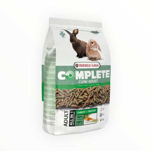 Versele Laga Cuni Complete es un alimento completo y equilibrado de fácil digestión y excelente sabor en forma de granulados extrusionados para la alimentación diaria de conejos enanos. Su exclusivo proceso de fabricación mediante extrusión permite añadir verduras frescas (como mínimo un 10%) a los granulados convirtiéndolo en un alimento muy apetitoso y con una elevada aceptación entre los conejos enanos. Esta tecnología all-in-one también evita que el animal seleccione la comida, un mal hábito común en estas especies. Con la tecnología all-in-one te aseguras que tu conejo enano obtiene un perfecto equilibrio de nutrientes en cada bocado.